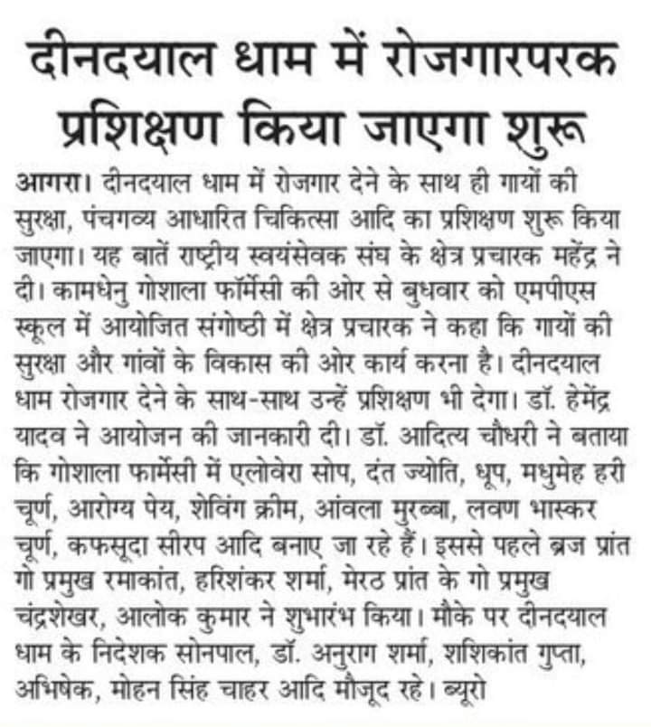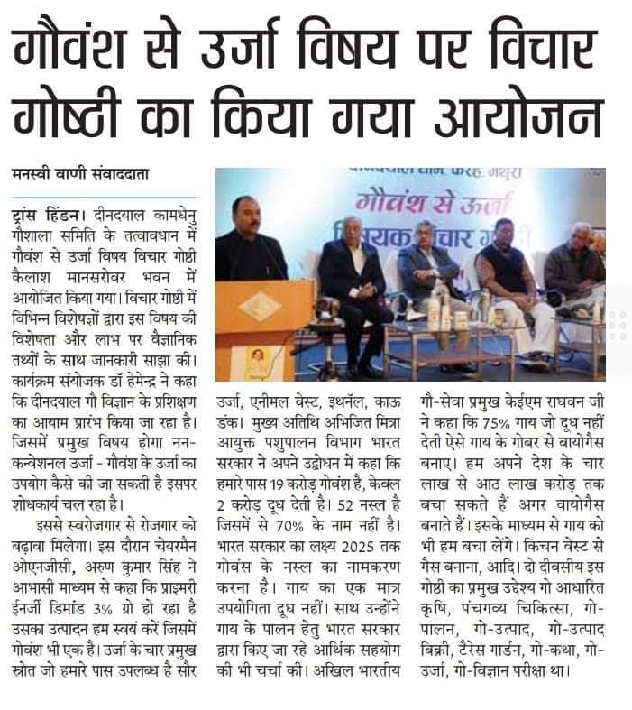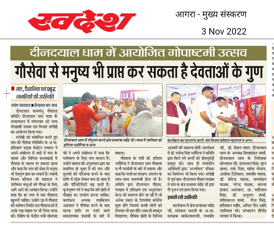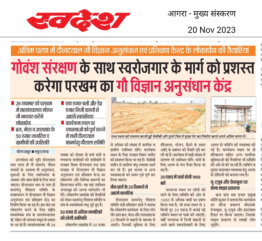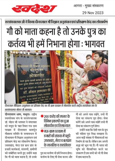 28th Nov Inaugration deendayal gau vigyaan Kendra
