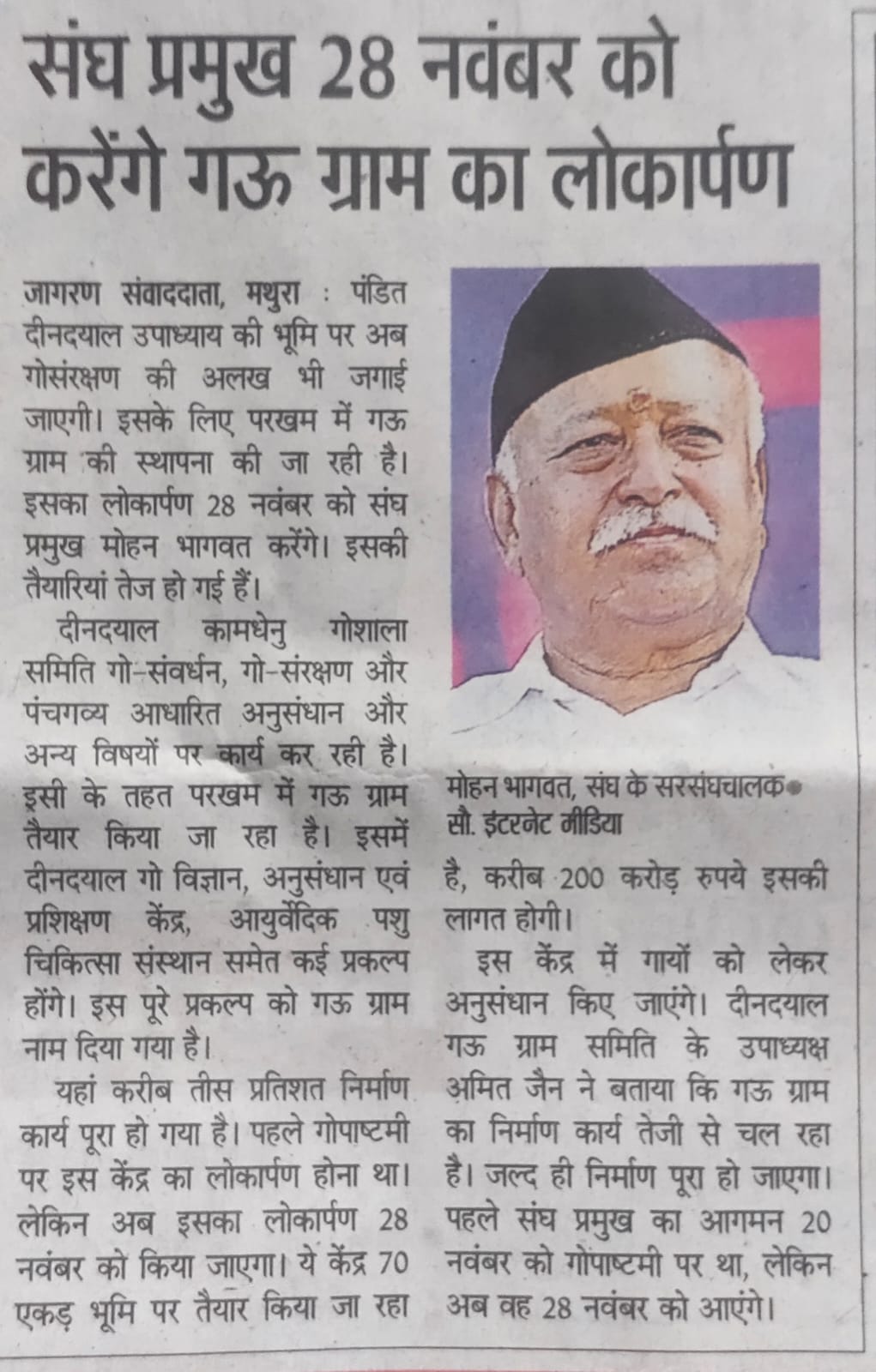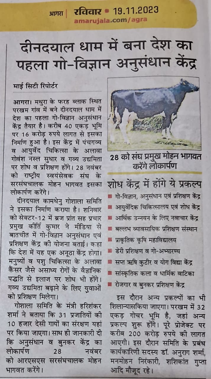 28 Nov ko hoga Gau Vigyaan Kendra ka Lokarpan